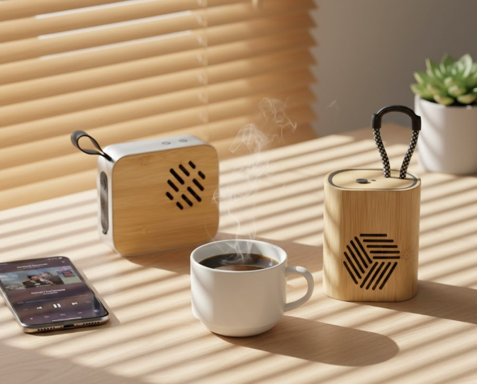 مكبر صوت بلوتوث محمول من الخيزران K59 – مكبر صوت لاسلكي صديق للبيئة بمقبض من الحبل المنسوج